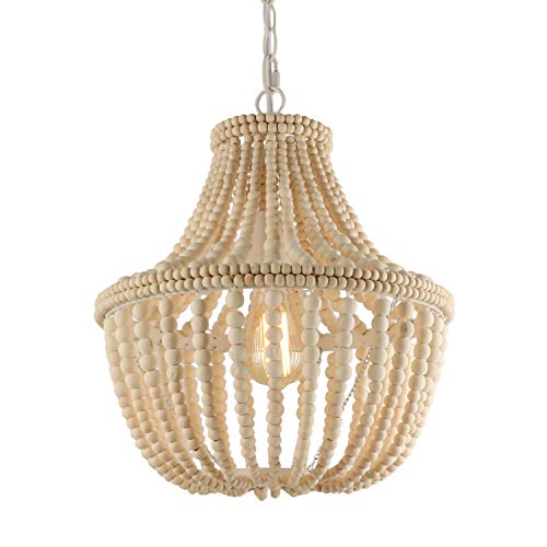 Anmytek Wood Beaded Pendant Light Modern Farmhouse Chandelier Lamp, Bohemian Home Decor Kitchen Island Rustic Hanging Lighting Fixture, B0010